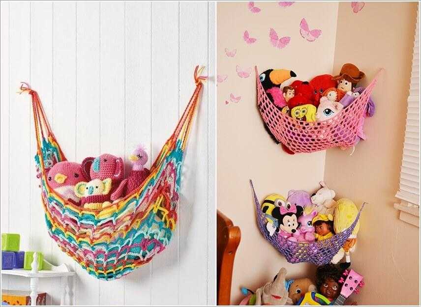Подвесной гамак может использоваться для хранения мягких друзей крохи.
