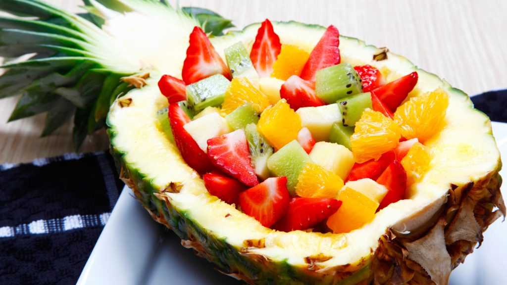 Несмотря на то, что ананас обладает сладким вкусом, его энергетическая ценность не высока – всего 50-60 ккал на 100 г продукта. Где вы еще найдете столь низкокалорийный десерт?