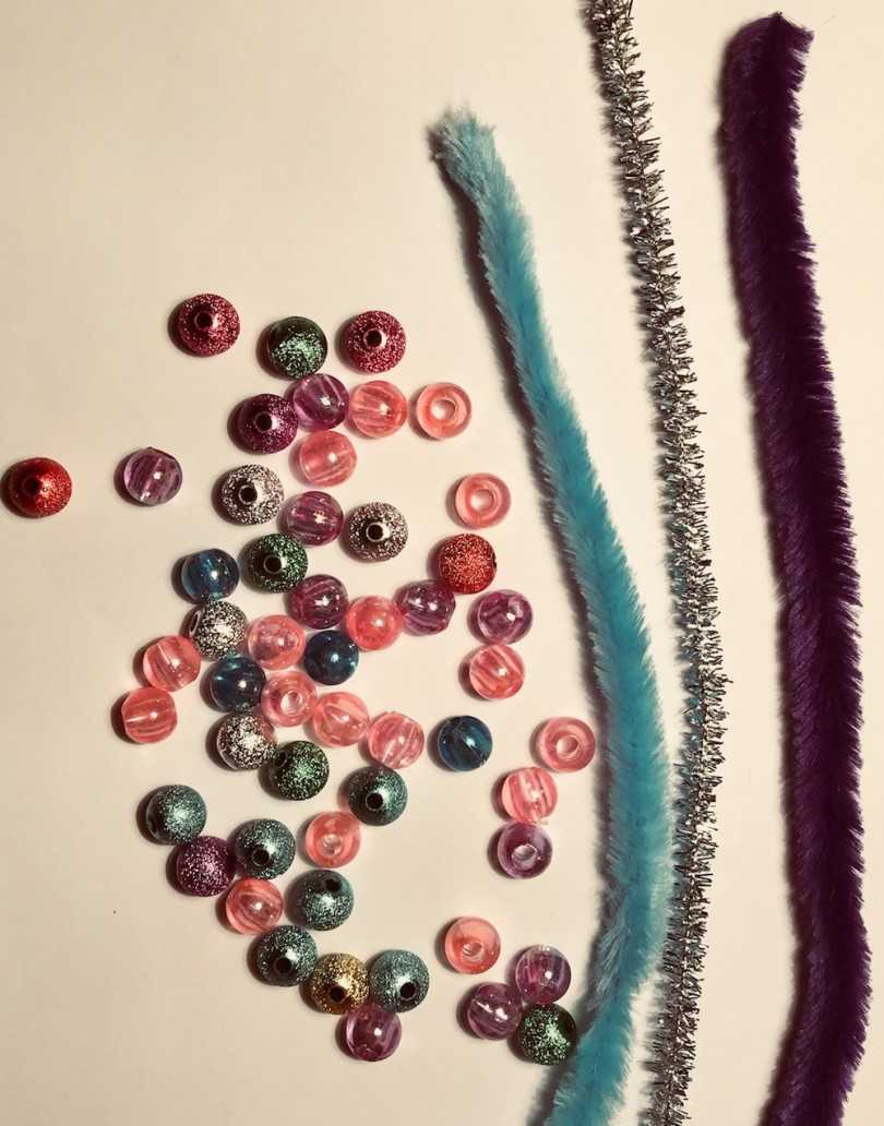 3. В завершение на нить нанизывают некоторое количество дисков мордашек, затем диски с буквами и снова снеговики.