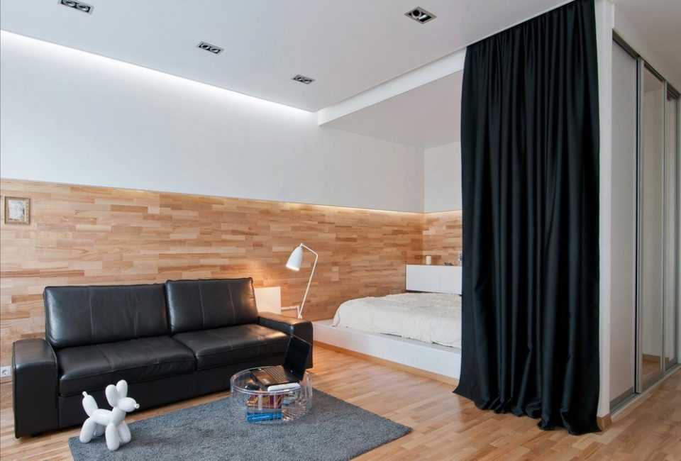 Зонирование однокомнатной квартиры шторамиИсточник dizainvfoto.ru