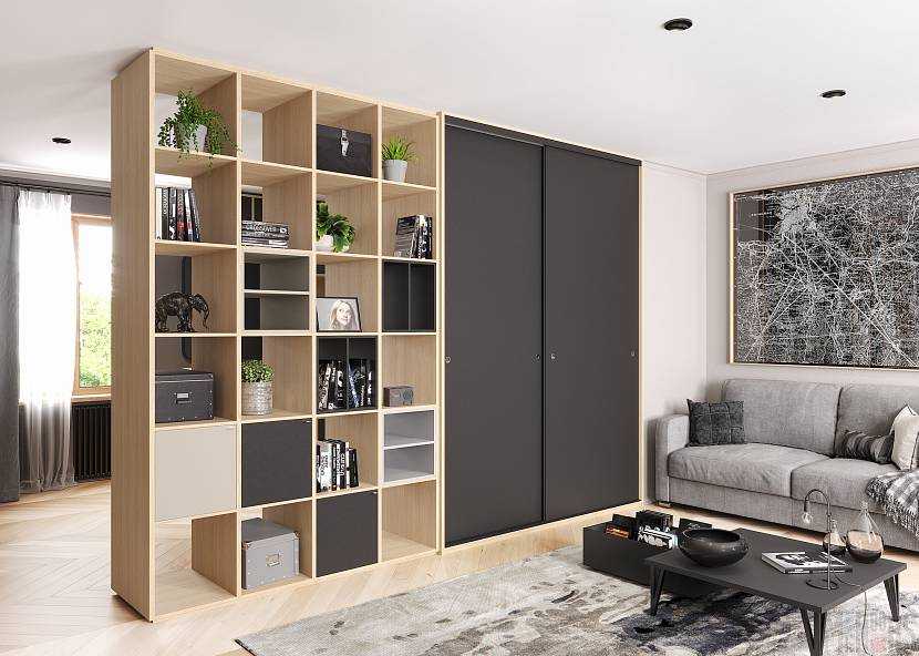 Такой шкаф-перегородка является актуальным вариантом.