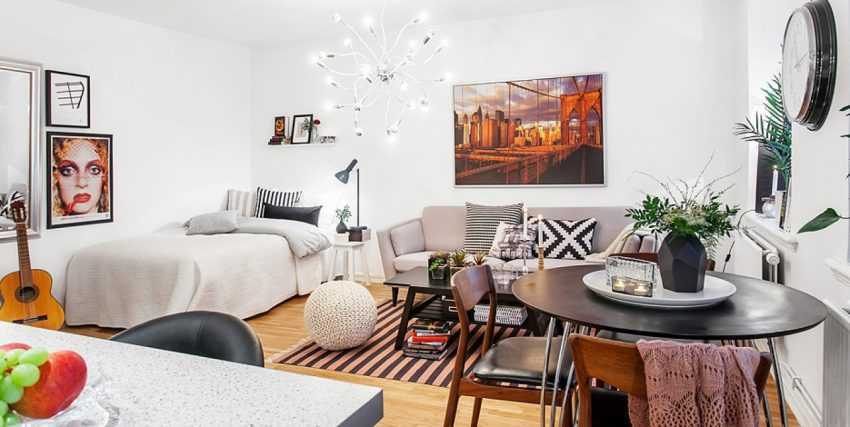 При грамотном зонировании даже на маленькой квадратуре можно разместить всю необходимую мебель.