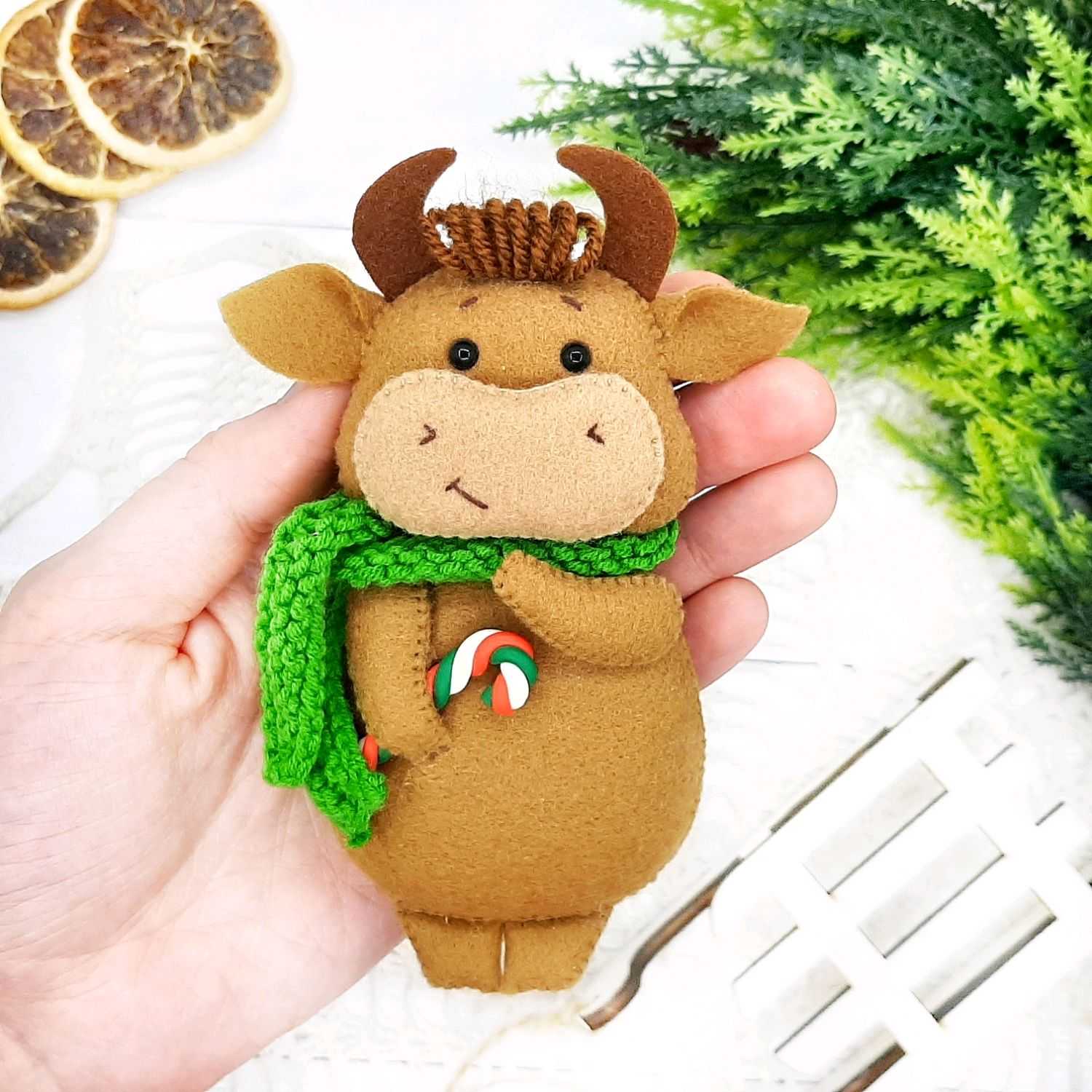 И, наконец-то, дело дошло до символа грядущего года – Быка. Интересные поделки на Новый год 2021 – Бык – могут быть какими угодно: из бумаги, глины или соленого теста, фетра… Фигурка сильного, уверенного животного – не только красивый сувенир, но и подарок со смыслом, несущий в себе пожелания семейного уюта, спокойствия, уверенности.