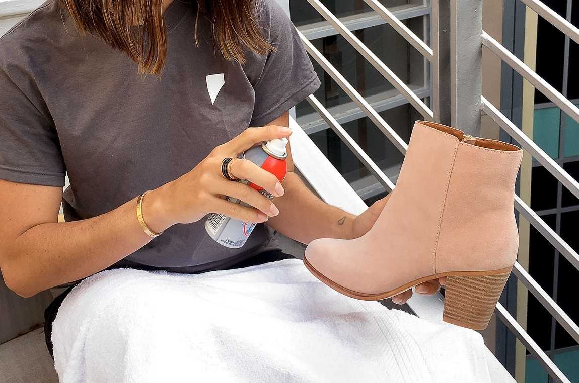 После того как обувь будет очищена и просушена, ее рекомендуется обработать специальным спреем. После распыления защитного средства на поверхность замши изделие не рекомендуется использовать. Необходимо подождать, когда оно полностью просохнет. Для повышения эффективности обработку рекомендуется повторить 2-3 раза (перед тем как наносят последующие слои, дожидаются полного высыхания).