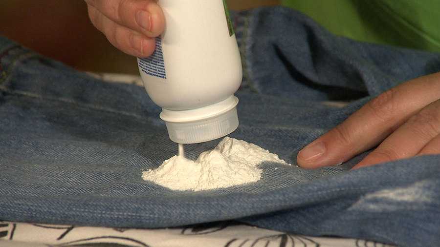 Белая глина и бензин. Понадобится 1 ст.л. бензина и столько же белой глины (приобрести можно в любом косметическом отделе). Полученную кашицу нанесите на пятно до полного высыхания. При помощи мягкой щетки удалите засохший слой и постирайте джинсы привычным способом.
