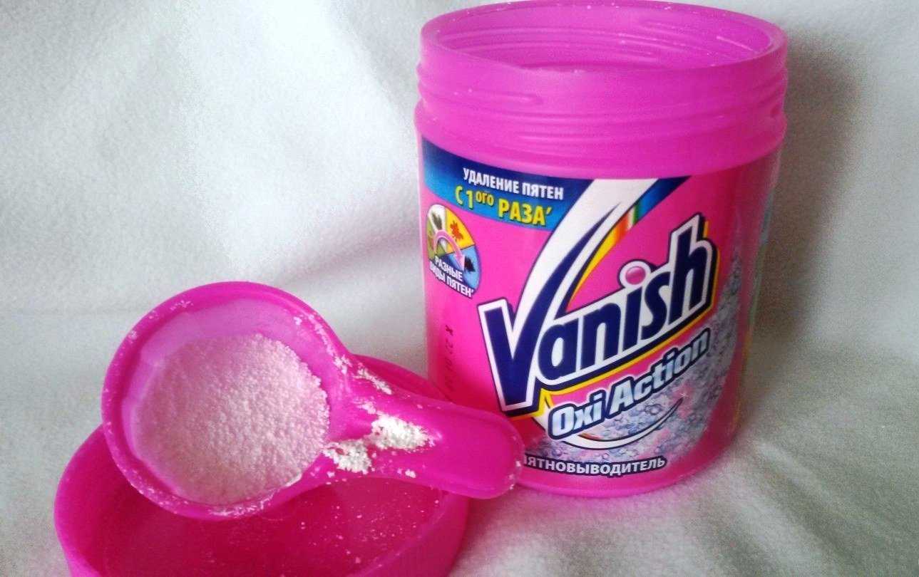 Vanish. Жидкое средство справляется лучше. Его необходимо нанести на пятно и хорошо потереть щеткой или колпачком от самого средства, поверхность которого ребристая.
