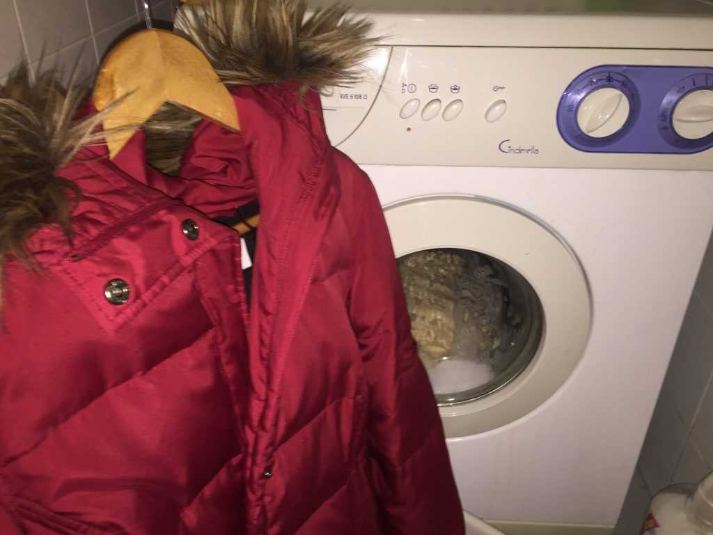- Выстиранный пуховик аккуратно достать и повесить на плечики.